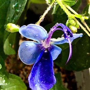 今晩は🤗⭐️ 今日も一日お疲れ様でした(^O^☆♪ 今日は水曜日ですネ🥰👍 可愛いクレロデンドルム・ブルーウィングがまた咲き初めました。 ♪(๑ᴖ◡ᴖ๑)♪💙💙💙💙💙 🏷 水曜日は水色 (ジュリアーノさん発信) 🏷 水滴の水曜日 ◎ クレロデンドルム・ブルーウィング 学名:Clerodendrum 英名:blue butterfly bush 科名:クマツヅラ科 属名:クレロデンドルム属 原産地:熱帯アフリカ クレロデンドルム・ブルーウィングは、クマツヅラ科の非耐寒性常緑低木。5月~9月頃に青い蝶のような小さな花が咲きます。その花姿から青い妖精、青い翼、ブルーバタフライブッシュなどと呼ばれています。 クレロデンドルム・ブルーウィングは、熱帯アフリカ原産なので暑さには強いですが、夏の強すぎる光は苦手で葉焼けをおこします。真夏は半日陰になるような場所で育てましょう。また、寒さに弱い性質があるので一年草として扱われていることも多い植物です。寒くなる前に室内に取り込むと翌年も花を楽しめます。暖地では霜に当たることがなければ屋外で越冬できます。 クレロデンドルム・ブルーウィングは支柱をしなくても育てられますが、背が高くなってきたらあんどん仕立てにすると形良くまとまります。初夏~秋までの寄せ植えやハンギングバスケット、半日陰の花壇に植える苗として用いられます。 可愛く咲いてくれたので本当に嬉しいです🥰👍👍 明日も素敵な一日になりますようように。 ☆*:.。. o(≧▽≦)o .。.:*☆☆☆💙🦋💙🦋💙🦋💙🦋💙