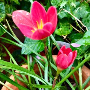 おはようございます🤗 今日の私のお花は、ハイブリッドゼフィランサス:プライドオブシンガポールです🥰👍 🏷 真っ赤な火曜日 ◎ ハイブリッドゼフィランサス:プライドオブシンガポール ゼフィランサスは南米原産の球根植物。レインリリーとも呼ばれていて、雨後の翌日には花弁が伸びてきます。花壇の縁取りにまとめて植えるとより美しくなります。やや寒さに弱いので、寒冷地では鉢植えにして、冬の間は凍らない場所にとりこみ、鉢のまま乾燥させるか、掘りあげて貯蔵します。 ハイブリッドゼフィランサスは色鮮やかな交配種です。従来のゼフィランサスよりも天候に左右されにくく、安定して開花してくれます。 タイプ 中南米原産のヒガンバナ科の球根植物 植え付け適期 3~5月 開花期 8~10月 草丈 15~20cm 日当たりのよい場所を好みます。鉢植えの場合は、4号(直径12cm)ポットに3~5球、球根の首が出るくらいの浅植えにします。地植えの場合は、5cm間隔で、球根の首が隠れるくらいの浅植えにします。元肥として、緩効性化成肥料や堆肥を少量施して植えつけてください。生育期には、月に1度、液肥を与えます。 温暖な地域では数年は植えたままで栽培できます。寒冷地では鉢植えにして、冬の間は凍らない場所にとりこみ、鉢のまま乾燥させるか、掘りあげて貯蔵します。 赤い可愛い花が咲き始めました。 (((o(*゚▽゚*)o)))♡❤️❤️❤️ 今日も穏やかな一日になりますように。 ☆*:.。. o(≧▽≦)o .。.:*☆☆☆❤️❤️☘️☘️❤️❤️☘️☘️❤️❤️❤️