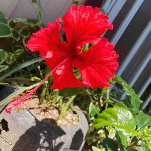 今日やっとハイビスカス咲きました〜〜🌺✨✨ ピンクの買ったのに赤に近い...🤔まぁでもとっても可愛いから全然OK!家族みんなで喜びました☺️ああ、やっと咲いてくれた〜!!