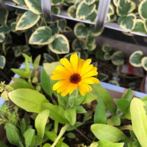 ミックスの種から咲いてくれたこの子可愛い〜🌼💕ひまわりみたいだけどちょっと違う...? 今は1輪しか咲いてないけどもっと咲いてくれるといいです☺️