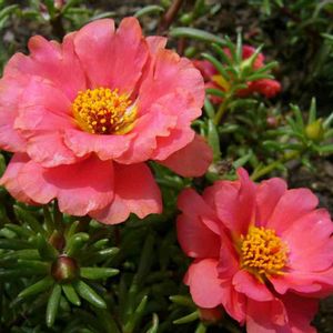 おはようございます🕊️🍀 小さいけれど美しい「マツバボタン」🌺 種から育てました🎵 小さな牡丹みたい~華やかです❣️ スベリヒユ科 スベリヒユ属(ポーチュラカ属)