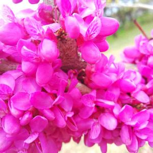 枝から直接に花がつく「ハナズオウ」🌺 葉はハート形になります❣️ 遠くからでも目を引く華やかさ(´︶`♡)