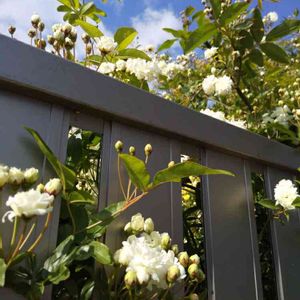 2020/04/24 花散歩…🐾🍀👣… フェンスの間から顔覗けてお出迎え…🎀🌼🌼🌿💮💙🌼🌼🌿💮💚🌼🌼🌿💮 青空と白いモッコウバラの花…〜…〜🙆🌼🍀✡️🌼🍀⚛️🌼☮️🌼🍀💖💠🎀💠