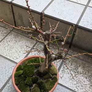 我が家の白梅盆栽です☺️ 寒さで蕾を膨らませながら寒さにじっと耐えています。 開花までもう少し☺️開花するのが楽しみでございます✨✨✨