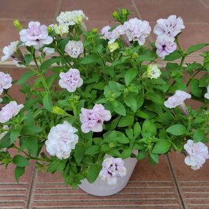 ペチュニア プティ シャンティ 何度形を整えてもあばれる(´-ω-`) 今年は八重咲き品種を3株お迎えしたけど、形よく咲く子がいないんですけど~😂😂😂 (葉はモリモリでも咲かない子もいる) これも個性♥️♥️♥️ 頑張ろーーー💪