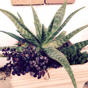 公園から持ち帰った捨て子君 だいぶ元気になったのでちゃんと植えよう😄🎵 斑入りのアロエみたいなの… 名前知りませんが街でよく見ます。