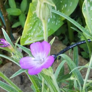 ツリガネニンジン (別名 トトキ) 漢方生薬 沙参 (咳止め、タンを切る作用があります) 久々の雨で潤いました。 雨粒も可愛らしい。