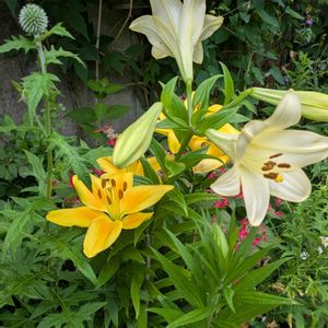 ユリ 色々咲き競っています。 種類、名前は判りません。