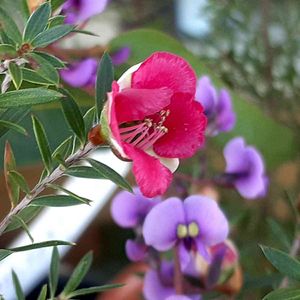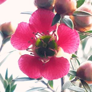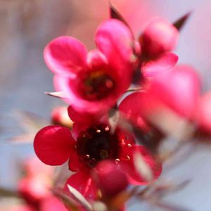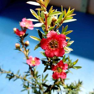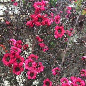 サラサラとした葉、細いのにしっかりした茎、その合間にたくさんのかわいらしい赤い花。 ワックスフラワーに似ていると思ったら、同じフトモモ科のオージープランツでした。 興味深いことがいくつもあったのですが、その一つ。 品種は違うようですが、ニュージーランドではマヌカハニーの蜜源になっているそうです。 なんてかわいいんだろうと、ふと足を止めて撮ったお花でしたが、調べてみるものですね♪ 本日、ギョリュウバイとマヌカハニーが結びつきました✨🐝
