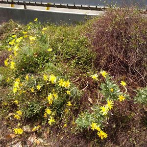 こんなにビビットカラー💛 可愛いお花なのに… "外来種"危険⚠️なのだそうです🌼 コンクリート壁の上にたくさん咲いています🌼🌼🌼