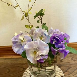 こんにちは🌞 階段のパンジーが 乱れて来たのでカット✂️② ①花瓶に カズラと一緒に そうそう 花に穴が空いてて 気になり見たら 丸々太ったナメクジ🐌が何匹も 花や葉がピカピカしてるから解りやすい 薬剤パラパラ ③匂い椿だったか 小さな花だけど 香りが優しい香り🌸 実家から挿し木した椿 今朝 暖かさにつられて咲いた ④種蒔きしたネモヒィラ まず咲いたのがこれ💙 黒も白にポチポチも有るはず ⑤リユウキンカ まず白花が咲いた 今年は遅かったです🤍💚💛 今朝咲いた3種類 初夏ネ〜😙