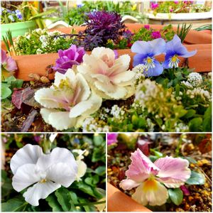 「今日のお花」 「パンジー🎵」 全てフリル咲きのパンジーさん😉💓 御一人様ではなく、ビオラ、ハボタン、アリッサム他との寄せ植えです🤭 (祝)青い花マニア5周年 🏷️春色の青い花2023 🏷️青い花でHappy Winter 🏷️癒しの紫♡ 🏷️癒しの紫 🏷️紫の妖精 🏷️かおるんるんさんを見守りたい! に参加させて下さいね🙆💕