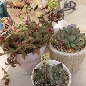 🏷ニョロン(26)の日 多肉ちゃんのお花、黄色の方がよく咲いてる💛 もう少しあるけど、集めてみたよ🌼 1⃣ミニュエット プレステラ105 小さくなっちゃった💦 保険株ないから作らなきゃ🍀 コポたんもお花見中🌼 2️⃣シャイニングパール プレステラ105 もう種みたいに固くなってる💦 3️⃣エイプス 4️⃣👆名無し 名前の方のタグが無くなってる💦 👇王妃晃の花 名前違うかも💦 見てこなきゃ😽 子吹き&葉挿しからのお子ちゃまが かわちぃ💓 5️⃣👈思い出露×デレンベルギー Rさん苗 👉エスター 45さん苗 紅葉が綺麗😻