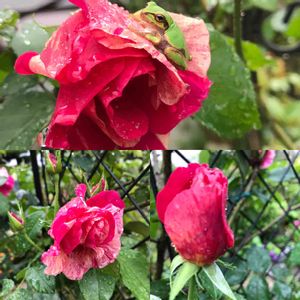 🐸とエドガードガ アーチの薔薇🌹に🐸がいつもいます。花弁の香と冷たいベッドがお気に入り