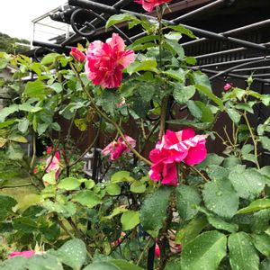 ❤️ エドガードガ❤️ 夏軽い剪定をしたので、秋の🌹と呼ぶべきかな? 色が濃いし、房咲きしたので、豪華です。