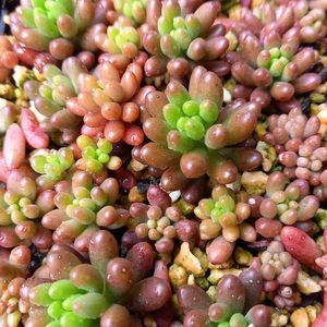 3月28日投稿した増産中の虹の玉。かなり緑に戻りましたが根っこ付きはモリモリ育ってます。 この後カットして隙間に挿していきます(◍´꒳`)つ𖤣𖥧ボスッ! ポロリした葉も発芽してますよ♪