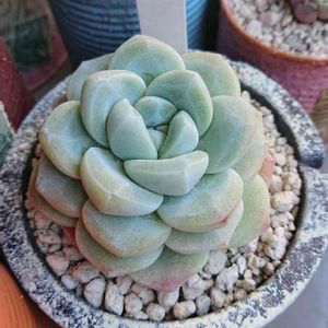 エケベリア属 アイシーグリーン🌱 今日明日とまた暑い晴れの国。10時頃には外気温は29℃を超え、南向きの多肉棚は遮光下で37℃に届きそうでした😱 さっぱり多肉事が出来ず、本格的には月曜以降の作業になりそうです💦 一昨年の年末にお迎えしたこの子。ずっと小さいままだったんですけど、何故かこの夏に育ってきました😂子ども2つも育ってきていて、これからが楽しみになりました🤭近日中に土替えする予定です👍🏻 午前中に投稿するつもりだったのに、久しぶりの友達が大好きな黒葡萄を手に立ち寄ってくれたのでランチに行ってきました🎶楽しかったけど、満腹過ぎて晩御飯作る気がしないです(笑) 「たっちんのアイシーグリーン」タブをタップで生長記録のみどりのまとめが簡単に見れます😊🎵 「多肉ラボ©」参加のお申し込みは、1/17のブロンズ姫の投稿からお願いします🤗🌱