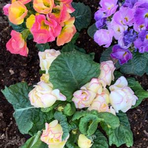 バラ咲きプリムラジュリアン ブルーベリームース🫐✨ いい香りです♬🧡 夜は寒いので不織布掛けて暖かくしてます♬