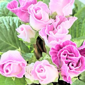 プリムラジュリアンバラ咲き ブルーベリーのムース。 優しい色合いで好きです。