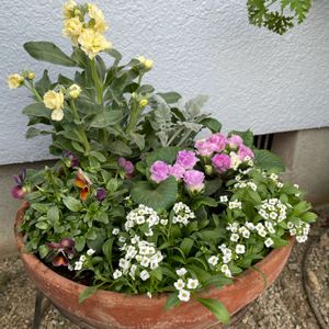 花屋で見かけたバラ咲きジュリアンが可愛くて、週末に寄せ植えにチャレンジしてみました。こんな感じの寄せ植えは初めてなので、これからもっと勉強したいです☺️