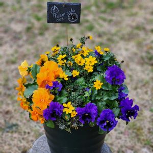 こんにちは😄 待機苗から作った寄せ植えを2個 ①うえたさんのミニパンジー エール17💙ブルーと紫のグラデーションが美しく一目惚れした子💓 ②シルバーリーフが綺麗なモクビャッコウとうちにいる黒竜とヒューケラと寄せました😄植えてる時に咲いてる花をボキボキしてしまいお花少ない💦 ③残ったお花のアップ どの色合いも綺麗💓💓 ④ホームセンターでお手頃価格だったフリズルシズルさん💙ブルーグレイが混ざったり素敵色💙💜 ⑤植えっぱなしのコロキアコトネアスターの鉢に、シルバーリーフの ヘリクリサムを追加しました😄 パンビオだけチェンジするからパターン😄 ちょっと地味ですが💦 花数増えた華やかになるかな😌 今日はとっても冷えますね🥶 暖かくしてお過ごしくださいね🍀