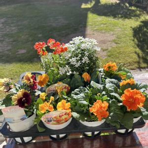 タキイアンバサダー活動報告𓂃𓂂ꕤ*.゚ ①ふるふるフリル 2株一緒にして様子をみていましたが、咲き出した💕小さなフリルでシックな色合いが好みです。これからたくさん咲くのが楽しみ😊 ②③フリズルフリル、こんぺいとう、葉牡丹の寄せ植え オレンジの花🧡再び咲きだし、紫の花💜も咲いているし、葉牡丹も綺麗だし、すごく華やかになっています✨ ④一種に寄せ植えしたオステオスペルマムは、しばらくお花休んでいましたが、この暖かさで(?)咲き出し、みんな全力を出し始めてきましたよ😊 これからがますます楽しみです。