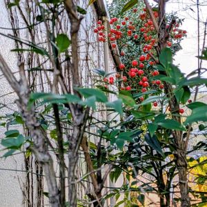 1️⃣2️⃣ 南天の実の赤と黄色が 駐車場の嬉しい彩りです 難を福に転じてくれて お目出度いですね! 3️⃣ アプローチの石組みの上に 馬酔木の蕾が大分前から出来ています 来春のお花(白)が楽しみです 4️⃣ アプローチの沢山のミズヒキは どれも茶色い引っ付き虫になっていますが 紅白の小さな子も見られます 5️⃣ 花壇の瑠璃茉莉は最後の頑張りかな?