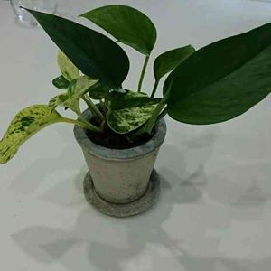 ポトスの斑入り。鉢もちゃんと選ぶと愛着わくなぁ