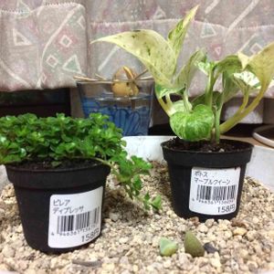 ちょっと涼し気にしてみました😄 マーブルクイーンは育てにくいと書いてあったけど大丈夫かしら…? 室内でも育つかなぁ。 昨日まで外に出してて、すでに葉焼けさせてしまったかも😵💦