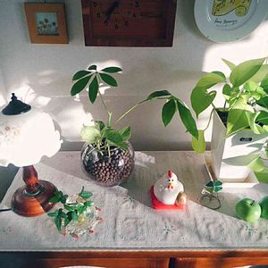 朝の光を浴びる大好きなグリーンたち🌿 気持ち良さそうに見えます💚 左のテーブルランプは朝ドラ「べっぴんさん」キアリスの事務所に置いてあるのとお揃いなんです😉 今日から2月🎵 少しずつ春に近づきますね🙌💕