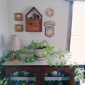 以前は梁の上にも植物を置いていましたが、猫たちが登るようになってしまったので吊るしています! 毎日眺めて癒されています😊