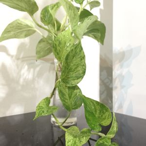 今まで縦長で楽しんでたポトスマーブルクィーンを趣向を変えて横長に置いてみました。 ちょっと新鮮♪