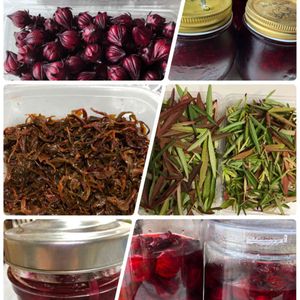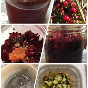 こんにちは😊 ご無沙汰しております🙇♀️ 久しぶりの投稿です🎶 もう終盤となったローゼル❤️ 定番のジャムと塩漬けの他に、甘酢漬けの漬け汁に玉ねぎを漬け込み、葉っぱの佃煮も作ってみました🎶 今年は手を広げて、収穫と加工で忙しくしておりました🙇♀️