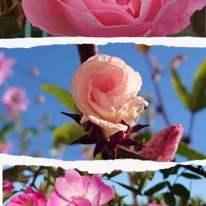 朝のお散歩🚶♀️ 公園で薔薇が咲いてました🌹 真ん中は庭のローゼルのお花💗 パールパーティさんの 🏷19日はピンクの日 🏷ピンクの日 参加させて頂きます🌸