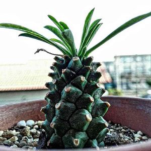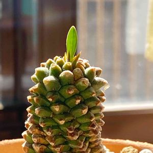 気になりすぎて買ってもうた… やっぱ普通の蘇鉄麒麟と違うよな〜 皆さんの家のパイナップルコーンはこのタイプですか?? ※どうやらこいつは峨眉山と鉄甲丸の交配種の蛾眉鉄甲のようです