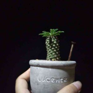 植え替えしたよ 蛾眉鉄 パイナップル🍍に似てかわいかったのに… 全然大きくならない 紅彩閣とユーフォルビア仲間で 抹茶茶碗に寄せ植え 玉稚児はカップにおひとり様💕