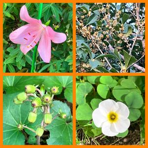 ◉ユリ ユリ科 多年草 花色 白、赤、ピンク オレンジ、黄、複色 ◉ツワブキ キク科 常緑多年草 ツボミがついています ◉キンモクセイ モクセイ科 常緑小高木 三大芳香木の一つです ◉オキザリス・プルプレア カタバミ科 多年草 毎年可愛らしい花を 咲かせます ◎ユリが倒れていたので 支柱をしていたら 良い香りがして... いつのまにか金木犀が 冷凍ユリだったのか花が 咲きました オキザリスも今年初 ツワブキもツボミが付き 始め、小さな庭も賑やか になりました