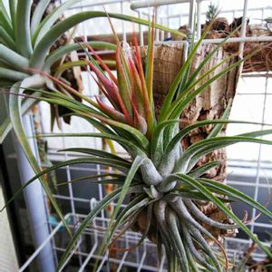 着生シミュレーション。 チランジアの知識なさ過ぎて、一年以上そのまま転がしといてました。(これより大きいのもひとつあり💧) 名無しです。一番ポピュラーな品種かな? ワイヤー買ったら巻き巻きしてみたいと思います。