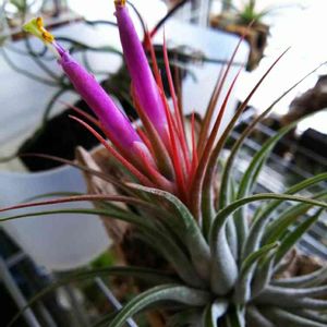 気付いたら咲いてました😳 チランジアはこの場所に置くと大体咲いてくれるので特等席🌿