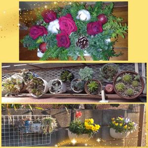 実家多肉🌵&母アレンジ🌹 多肉…どんどん増える🤣 ブロック塀にも増設👍 もう少し増やせそうだね😎 空いてるプランターにセダムを撒いてきたし🤣 母のアレンジも素敵に出来たと自己満足してたので、お披露目🤗