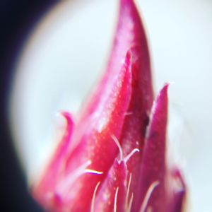 今日届いた葉挿しのひとつ。 マクロレンズで覗いたら、肉眼でははっきり見えないけどチビチビな芽を発見。 可愛いなぁ...
