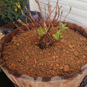 30分程前、、玄関先階段5段目ほどの高さから 娘が玄関ドアを何故か全開に無理やり開いて落下したラグランジア😭😭 花芽が何個も折れてしまいました😭 慌てて残っている土と新しい用土で応急処置、、 そこに置いている方が悪い、、と言い聞かせながらも ショックで呆然としている私です😦