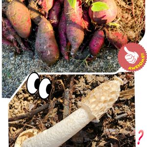 🌿栗園片付けてたら、見たことのない物体を発見😱⤴⤴ 🤔調べると スッポンタケ🍄🟫?だそう😅 👍食用にもなるらしいけど、かなり気持ち悪く~撮るのが精いっぱい🙏💦💦 うちの家庭菜園~ 🍠さつまいも、昨日、たくさん収穫出来ました...🎵🤗