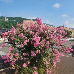 【田舎の風景…(^-^)】 👍田舎のある小さな駅に~ 綺麗に…立派に咲いてる百日紅🌿🌺 & 地元~道の駅の立派な花火💣➰🎆🎉