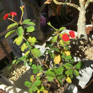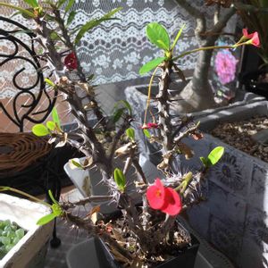 ユーフォルビア 赤花キリン 葉を落としつつもまだ咲いてます。🤗