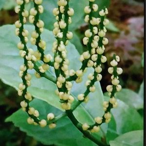 チャラン 中国では金栗蘭とも呼ばれ、5㌢ほどの放射状に伸びた茎?にツブツブの蕾がたくさん出来ます これが花で、いつまでたっても開かず、ツブツブで開花なんですって⁉️ 閉鎖花と言って開きませんね 二人静と同じ仲間で 花が開かないのに香りを持ってて ベトナムではこの花を集めて エッセンシャルオイルを作ってるとか⁉️ ツブツブ、どんだけ集めるんだろうか❓️ 私の鼻には香りは届かなかったけど……。🙄