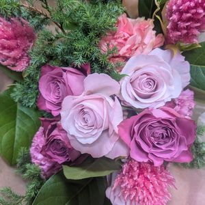 三度連投失礼します😅 先程娘も来て花束💐のプレゼント♥ 薔薇🌹2種と2色のカーネーション、ピンクのケイトウも可愛いです〜♥ 旦那ちゃんからは⁉️って😅 今年は畑庭に使う工具を色々買ってもらってるのでそれで🆗🤭🥰