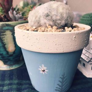 とうとうメルカリに手を出してしまい、お迎えした白星。 真っ白の柔らかくてカールした棘が可愛らしい💕 来年にはお花を咲かせられますように。 この子には、茶色い鉢じゃ嫌、と素焼き鉢を白と青に塗り塗り… 植えてから、やっぱり絵も描きたくなり、植わった状態で、木と星と、見えないけど家を影絵風に描きました。 当たり前だけど、植わった所に描くのは、土もこぼれそうになるし、大変でしたー(´△`) ご利用は計画的に 笑
