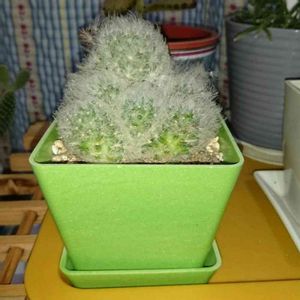 カプチーノ!? いえ、マミラリア属のサボテン 白星です。 カップ型のアンティーク鉢は、シマムラ園芸さんでGET✨