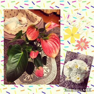 今年最初の投稿😊 ピンク色のアンスリウムに白星さん🌸🌵 どちらも以前に投稿してから、ずっと花を付けてくれてます💕 あ、それからうちの愛娘のワンコ🐶😆 この子は家にいる時は相変わらず、殆ど寝てます😪😴🐾 昨年夏からGSを始めてから、毎日、皆さんの素敵なpicを見せてもらう事で、元気と癒しを充電してます❤️ 今年も引き続きどうぞ宜しくお願いします🍀😊🐶🌸🌵🌿🌱🙇♀️🙏🍀💕